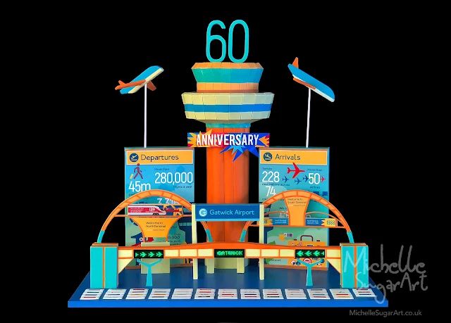Gatwick Airport is the world's busiest single runway airport as well as the first airport in the world to combine air, road and train travel in a single unit. These are just some of the many impressive statistics for Gatwick Airport and the concept is to show these in the cake!
